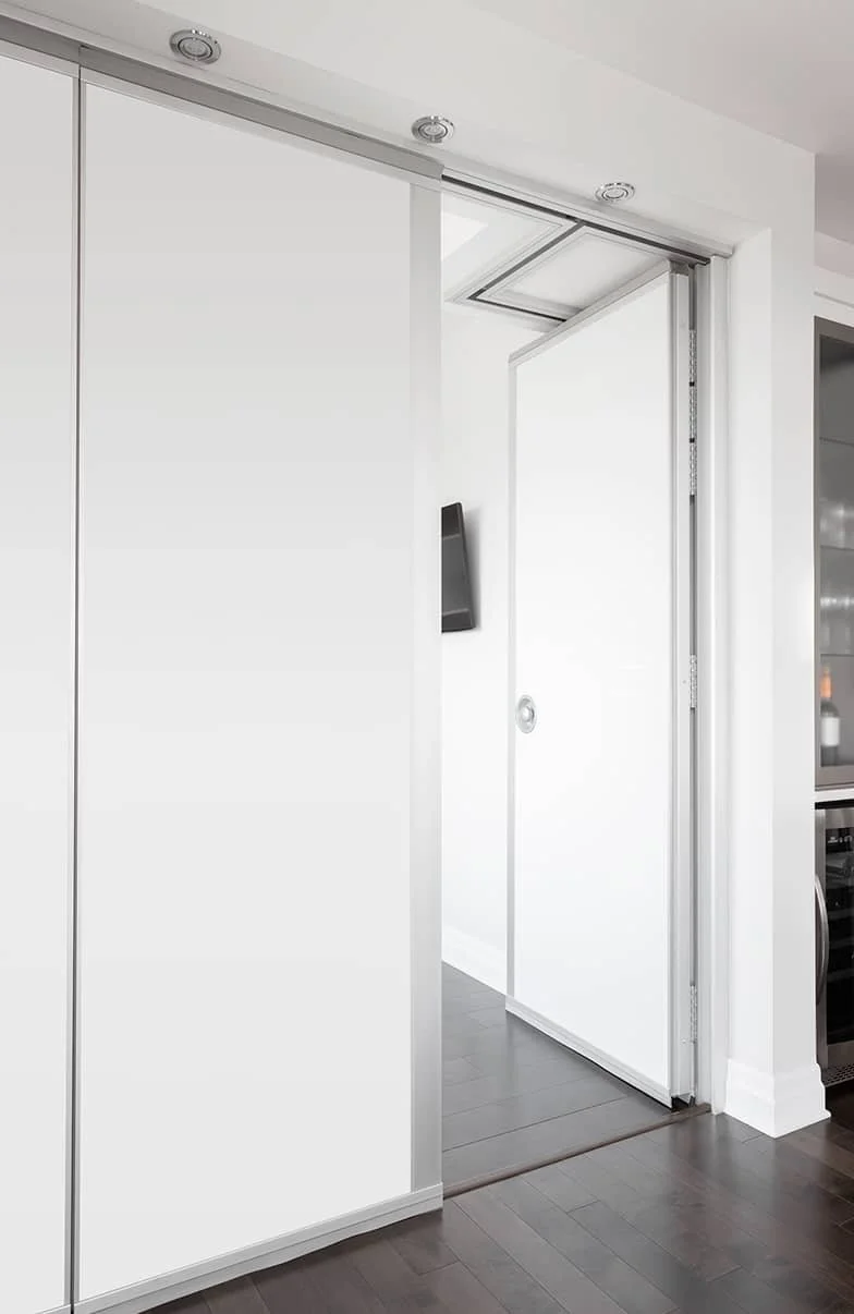Available in individual assembly (4600) or in pair (4500), the 4000 Series movable partitions are distinguished by their very discreet aluminum framing and the possibility of integrating a distinctive hardware for a sleek design of superior quality.